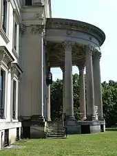 Historically known as Hyde Park, the Vanderbilt Mansion National Historic Site is one of the area's oldest Hudson River estates.[3] The earliest development of the estate began in 1764 when Dr. John Bard purchased land on the east side of the Albany Post Road, where he built Red House and developed the agricultural aspects of the eastern section of the property that continued through Frederick and Louise Vanderbilt's occupancy. Bard family ownership continued through 1821 with his son, Dr. Samuel Bard (1742–1821), owning the property from 1799 to 1821. In 1828, Dr. David Hosack, president of the New York Horticultural Society, purchased the property from Samuel Bard's heirs, with André Parmentier helping to design the grounds. In 1840, John Jacob Astor purchased the property from Hosack's heirs for his daughter Dorothea and her husband Walter S. Langdon. Their son Walter inherited and occupied the estate to the time of his death in 1894.[4]
