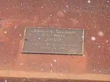 The concrete bridge abutments were built in 1950, and the builder's plate on the bridge confirms the steel deck was constructed in 1952 by the Central Bridge Company in Trenton, Ontario. It is mapped at approximately 302 metres above sea level.[2]