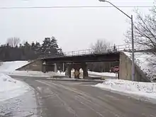 The Vandorf Sideroad CNR Bridge is a railway bridge in the community of Vandorf, in the town of Whitchurch-Stouffville, Ontario, Canada. The bridge carries the line known as the Canadian National Railway Bala Subdivision and crosses Woodbine Avenue diagonally at Vandorf Sideroad.[1]