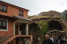 A significant number of the structures surviving the 1915 destruction were destroyed in the 1960s.[20] As of 2006, the monastery's remains were used as a barn.[21] According to historian Ara Sarafian, as of 2012, "good sections have just barely survived until our days."[20] Dr. Jenny B. White, a scholar on Turkey, wrote in 2013 that, on her visit, the remains of the monastery "consisted of nothing more than a few brick vaults used to house goats amid a clutch of tumbledown Kurdish homes."[22] The best-preserved section of the monastery is the church of Surb Gevorg (St. George),[23] which is now looked after by a caretaker.[24] The dome is partly collapsed and contains some traces of surviving frescoes.[24] The dome of the church of Surb Nshan is entirely gone.[25]