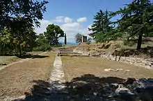 Vardarski Rid is an archaeological site in Gevgelija, North Macedonia of a town dating from Early Antiquity. Archaeological excavations reveal the architectural layout of the monumental stoa, an acropolis, and other segments from the settlement. Vardarski Rid is also used today as a picnic spot.