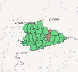 Vargashinsky District (Russian: Варгаши́нский райо́н) is an administrative[1] and municipal[5] district (raion), one of the twenty-four in Kurgan Oblast, Russia. It is located in the central and northern parts of the oblast. The area of the district is 3,020 square kilometers (1,170 sq mi). Its administrative center is the urban locality (an urban-type settlement) of Vargashi.[1] Population: 19,919 (2010 Census);[2] 23,255 (2002 Census);[7] 24,417 (1989 Census).[8] The population of the administrative center accounts for 46.5% of the district's total population.[2]