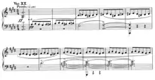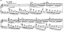 | XXI | Andante (60 bpm) - Più vivo (100 bpm) | D♭ major C major | 24 bars in D♭ major followed by 29 bars of 3 4 in C major marked Più vivo (100 bpm) |