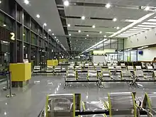 Terminal 1 (closed) was extended several times over the years. The departures area had 21 check-in counters and six security checkpoints. In the terminal there were various outlets: cafes, fast food restaurants, currency exchange, and duty-free shops. There were ten boarding gates. The arrivals area had two luggage belts, as well as currency exchange and a tax-free shop. Terminal 1 still has a VIP room and business lounge. In 2010 the VIP room was renovated. As of 2014, all flights, including no-frills, are managed by Terminal 2. Hence, the old terminal is closed except the VIP area.
