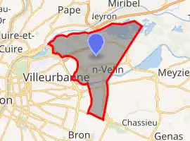 listen)) is a commune in the Metropolis of Lyon in Auvergne-Rhône-Alpes region in eastern France. It is the third-largest suburb of the city of Lyon, and is located to its northeast, on the river Rhône.