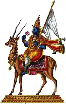 ![]() Vayu (dikpala), on his mount, gazelle | |