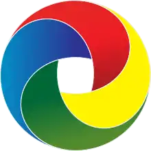 This vector-based (SVG format) image of a round four-color swirl displays several unique features of vector graphics versus raster graphics: there is no aliasing along the rounded edge (which would result in digital artifacts in a raster graphic), the color gradients are all smooth, and the user can resize the image infinitely without losing any quality.