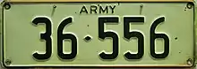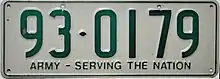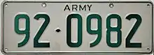 However, new plates issued to the Army are now in this format: nn-nnnn, where the first two digits represent the year the vehicle was registered, e.g. 05-1832.