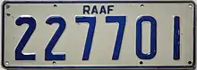 The official car of Chief of the Defence Force carries plates ADF1 and official cars for the three service chiefs carry plates ARMY1, NAVY1 or RAAF1.