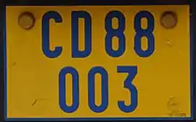 Embassy and consulate vehicles have their own license plates with a yellow background and blue text.