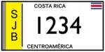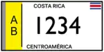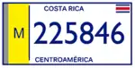 Costa Rica requires its residents to register their motor vehicles and display vehicle registration plates.[1] The country has issued plates since at least 1923. The letters "CR" on plates into the early 1940s indicated the country name. The country name has been spelled out on the plates since at least 1944. In 1959 the legend "Centro America" [Central America] has appeared on the plates. Annual plates appear to have been issued through at least 1954. There were plates where the first two characters indicated what city the owner lived in. Multi-year base plates began to appear in 1955, but their use was not consistent until the mid-1960s. The current plate size is the North American standard of 6 × 12 inches (152 × 300 mm).[2]