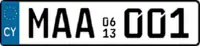 AB 1234). Plates with 5 digits (12345) and 4 digits (1234) are also issued upon request. Older series with two letters and three digits (AB 123), and one letter and 4 digits (A 1234) are no longer issued but are still in use. Special plates for diplomats, the government, the grand-ducal family, military vehicles and temporary registrations exist and follow specific rules. Two letters and three digits (AB 123) is also used in Northern Cyprus, and until 1973 it was used on the entire island of Cyprus. - Current registrations allocated in Romania and the United Kingdom (where the registration contains two digits) are both of the form AB12 CDE. The Romanian rear plates are white whereas UK ones are yellow. There is also a difference in the spacing and the font. In 2010, Bucharest, the capital of Romania, adopted the form B 123 AAA, three digits and three letters, because the number of cars had risen. In the United Kingdom, B123 AAA was issued to cars registered from August 1984 to August 1985. Aside from this, some county codes can clash (SV, in Romania it stands for Suceava, and in the United Kingdom, it stands for Aberdeen).