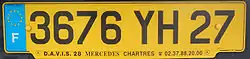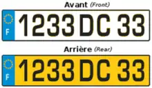 - Legifrance (9 February 2009). "Arrêté du 9 février 2009 fixant les caractéristiques et le mode de pose des plaques d'immatriculation des véhicules" (PDF).