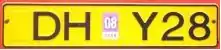 “Oil” | AB 123 or AB C12 | Reflective dark yellow background, black frame, and black characters | Vehicles with "oil" plates are allowed to use tax free Diesel oil. Those plates are issued to vehicles that burn fuel in a stationary position (e.g., fire trucks, rescue teams, construction vehicles. |