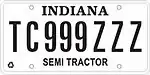 Indiana maintains separate plates for trucks, trailers, tractors/trailers, and farm vehicles. Except for farm and motorcycle vehicles, the plates follow an eight character AB123CDE format. All following plates use a plain white background
