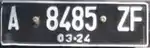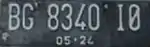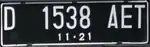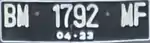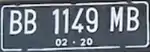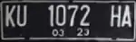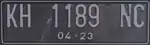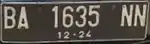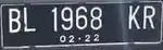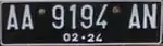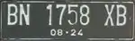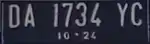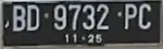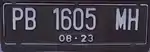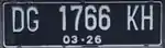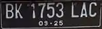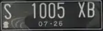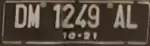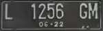 Measured at approximately 460 by 135 mm and constructed from stamped metal sheet. With some exception (see below), vehicle registration plate in Indonesia use the following format: LL NNNN LL where "L" are letters of the Latin alphabet, and "N" numbers from "0" to "9" (note that the first number is never a "0"). The first single or double letter prefixes denote the area of registration. This is followed by number between 1 and 9999 without leading zeroes. This is then followed by one or two letters although they may be optional. For example: B 1577 RKH is a vehicle registered in Jakarta Timur region, because it begins with B. A smaller, four digit numbers separated by dot is located at the top (old format, with horizontal line as divider) or bottom (newer format, commonly without divider) of the plate with following format: NN・NN which denote the month and year of when the plate will expire (e.g. 05•27 means until May 2027), and the owner must pay the tax to renew it every five years .