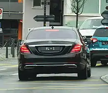 Returned license plates with very low numbers (4-digit motor car plates, 2-digit motorcycle plates) or eye-catching number combinations (e.g. FL 40000, FL 40404 etc.) are only available via license plate auctions at the Road Traffic Office in Vaduz. These auctions usually take place every 2 years.[17] Ordinary combinations of digits that are not already assigned to another holder can be reserved at the Road Traffic Office. Reservations are only possible within the currently available number range (up to FL 40300 for passenger car plates and up to FL 5899 for motorcycle license plates). The fee for a desired number is 500 Swiss francs.[18][19]