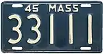 1945 | Embossed white serial on dark blue plate; "45 MASS" at top | 123·456 | 1 to approximately 799·000 | |