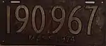 1919 | Cream serial on dark blue flat metal plate; "MASS. 1919" centered at bottom | 123,456 | 1 to approximately 177,000 | |