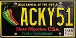 | Slogan | Yucca, turquoise and chile plates: Land of Enchantment Chile plate only: Chile Capital of the World |