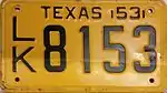 1951 | Embossed black serial on golden yellow plate; "TEXAS-51" at top, offset to right | none | A/B1234 | A/A10 to L/Z9999; U/A10 to approximately U/R8000 |