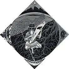Veles is presumed to be or to represent the same figure as Vala, the enemy of the Vedic thunder god Indra. Other scholarship suggests a closer connection to characters of Baltic mythology, such as Velnias, Velns (Latvian) or Vėlinas (Lithuanian),[8][9] a devil-like entity and enemy of the Baltic thunder-god Perkūnas (cf. Slavic Perun). Scholar Marija Gimbutas cited "related" etymons: Lithuanian veles 'shades of the dead' and Latvian Vels 'god of the underworld', which seem to indicate Veles's connection to the underworld.[10] An ancient Russian word, Vlasezhelische, probably refers to the place where Veles dwells, "the underground kingdom or an entrance to it".[11]