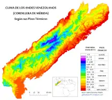 The Venezuelan Andes montane forests ecoregion covers most of the Venezuelan states of Mérida and Trujillo, much the state of Táchira and the highlands of the states of Lara and Barinas.[1] It includes a small area in Colombia. It covers the lower part of the Venezuelan extension of the Cordillera Occidental of the northern Andes. It has an area of 2,952,586 hectares (7,296,000 acres).[2]