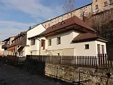 Venice of Cieszyn (Polish: Cieszyńska Wenecja) is a part of the Old Town in Cieszyn, Poland. It is a section of contemporary Przykopa Street (formerly Nad Młynówką) which comprises buildings from the 18th-19th century, many of them with bridges over the course of Młynówka (an artificial canal).[1] In the past the buildings over Młynówka belonged to craftsmen: tanners, weavers, clothiers, leather-dressers and smiths, who needed constant access to water for their craft.[2] It is the area between the intersection of Przykopa Street and Jan Łyska Avenue and the corner of Przykopa and Schodowa streets.[3]