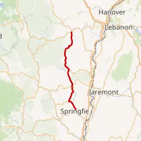Vermont Route 106 (VT 106) is a 25.963-mile-long (41.783 km) north–south state highway in Windsor County, Vermont, United States. The route begins at an intersection with VT 11 in the town of Springfield and runs along the Black River for several miles, crossing through Weathersfield, Reading and Woodstock before reaching the village of Woodstock, where it ends at a junction with U.S. Route 4 (US 4).