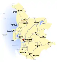 Vernaccia di Oristano is a white Italian wine grape variety grown on the island of Sardinia which makes a wide range of wine styles for the Denominazione di origine controllata (DOC) of Vernaccia di Oristano based in the province of Oristano. This includes both dry and sweet wines as well as fortified "sherry-like" wines aged in a solera.[1] The grape has a long history on the island of Sardinia with Sardinians claiming that consuming ample quantities of wine produced from the grape as being responsible for low instances of malaria on the island.[2]
