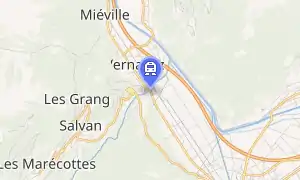 Vernayaz MC railway station (French: Gare de Vernayaz MC) is a railway station in the municipality of Vernayaz, in the Swiss canton of Valais. It is located on the 1,000 mm (3 ft 3+3⁄8 in) gauge Martigny–Châtelard line of Transports de Martigny et Régions. The depot for the line is located just south of the entrance to the station. Another station, Vernayaz on the standard gauge Simplon line of Swiss Federal Railways, is located roughly 1.1 kilometres (0.68 mi) to the north, across the Trient river.[1] There is no local transport connection.[2]