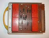 A number of these sub-units were interconnected through connectors mounted on a motherboard similar to that shown in the Veroboard Display image and comprised a very early PCB-based backplane system. Each sub-unit had a digital capacity equivalent to 1/2 byte of data storage - i.e. 2,000,000 would be required to store 1 megabyte.