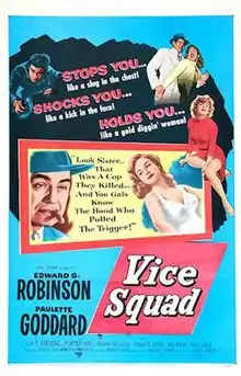 Vice Squad is a 1953 American film noir crime film directed by Arnold Laven and starring Edward G. Robinson and Paulette Goddard.[1] The film is also known as The Girl in Room 17.[2]