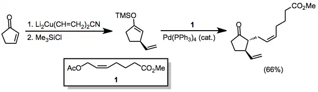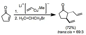 Lithium organocuprates undergo oxidative addition to enones to give, after reductive elimination of an organocopper(III) species, β-substituted lithium enolates.[4]