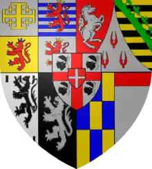 7. Genealogie ascendante jusqu'au quatrieme degre inclusivement de tous les Rois et Princes de maisons souveraines de l'Europe actuellement vivans [Genealogy up to the fourth degree inclusive of all the Kings and Princes of sovereign houses of Europe currently living] (in French). Bourdeaux: Frederic Guillaume Birnstiel. 1768. p. 25.
