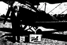 The Shell Oil Company was heavily involved with Roffey's endeavour to be the first to fly from New Caledonia to Australia, communicating with the press on Roffey's behalf and providing Roffey with Shell products to use during his trip. In what was likely a form of embedded marketing, the Shell brand was mentioned numerous times in newspaper articles.[27][28] After his journey, a newspaper photo was also published with Roffey standing in front of his plane beside a Shell logo.[28]