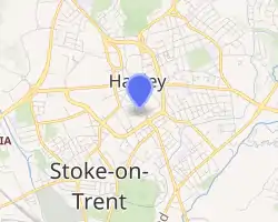 Victoria Hall was constructed as an annex to Hanley Town Hall in 1888, as part of the town's celebrations for the Golden Jubilee of Queen Victoria.[2] It was built in red brick and terracotta, and designed by local borough surveyor Joseph Lobley.[3]