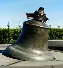 The bell was restored in the year 2000, and placed on the grounds of Parliament Hill as a monument to the 1916 fire and to Canada's first Centre Block parliamentary building. It is showcased on a circular granite base, etched as the face of a clock, that represents its role in the keeping of time. The bell's inclined position recalls the angle at which it came to rest after falling during the fire of 1916.