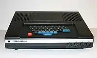The VideoBrain Family Computer (model 101) is an 8-bit home computer manufactured by Umtech Incorporated, starting in 1977. It is based on the Fairchild Semiconductor F8 CPU. It was not a large commercial success and was discontinued from the market less than three years after its initial release. Some of its lack of success has been attributed to the decision to substitute the APL/S programming language over the then-standard BASIC. Due to the high cost of RAM memory, it only contained 1 KB. It had a full-travel keyboard, unlike some early home computers that featured membrane keypads (and earlier kit machines that used switches), but with a very non-standard layout. It was designed by David Chung and Albert Yu.[1][2]