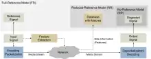 Objective models can be classified by the amount of information available about the original signal, the received signal, or whether there is a signal present at all:[5]