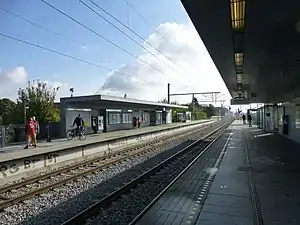 Vigerslev Allé station is an S-train station in Copenhagen, Denmark. The station is located on Vigerslev Allé, the main traffic artery of its namesake neighbourghood of Vigerslev, which forms the westernmost part of the Copenhagen district of Valby.