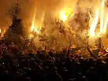 The traditional and popular festivals (festes) celebrated in Vilanova i la Geltrú are among the richest and most varied in Catalonia.[14] Locals say that Vilanovins "always have a leg in the air" referring to their festive proclivity. And it is through participating in local festivals that Vilanovins, whether natives or recently arrived newcomers, intensify their sense of belonging to a community dedicated to active engagement between neighbors or convivència.[15]