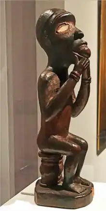 The Vili culture is rich in a secular history, a Matrilineality society which is the foundation of a Vili language full of nuances where proverbs have a prominent place; of an original measurement system,[1] of a spirituality whose Nkisi,[2] Nkisi Konde or nail fetishes are the famous physical representation. These artifacts are "commentaries by themselves". They provide keys to the understanding of creativity and identity that prevailed at the time of their creation.[3]