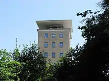 Built in 1920 on a site that before had been the Louvigny fort of the old fortress of Luxembourg, it was named after Jean Charles de Landas, Count of Louvigny, who was chief engineer and interim governor of the fortress in the 1670s.[1] The building was rented to the Compagnie Luxembourgeoise de Télédiffusion, who eventually bought the building in 1936. In 1991 the administrative offices moved to a new building on the Kirchberg plateau, followed by the technical installations in 1996. The philharmonic orchestra of Luxembourg remained in the facilities until 2005 when the Philharmony building was finished.