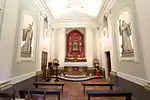 The Chapel was built in 1771 and is attached to the right wing of the villa with an entrance from the north side. The marchese used to enjoy Papal Mass from a private balcony that connected the chapel with his suite on the noble floor. Because of his close ties to the Vatican and the Pope, the chapel contains a remarkable collection of Christian relics, such as those of Saint Potenziana, Saint Ruffina, and Saint Vincenzo Martire. The final resting place of St. August was also there. He was found hidden behind the wall, preserved from the German invasion.[10]