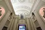 The villa's elliptical staircase is made of brick embellished with fake marble decorations. The staircase starts on the ground floor, with two identical flights to the principal, or noble, floor above. The lighting is enhanced by Swarovski crystals. A modern elevator has been installed in the left wing of the palace, running from the ground floor to the top floor.