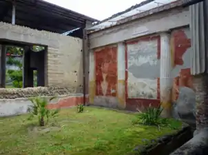 Nearby is the so-called Villa of L. Crassius Tertius,[17] partially excavated between 1974 and 1991. In contrast to the sumptuously decorated Villa Poppaea, the neighbouring villa is a rustic, two-story structure with many rooms left unplastered and with tamped earth floors.