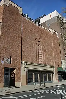 In May 1925, Jaffe acquired a site on 12th Street and Second Avenue, formerly part of the Stuyvesant Farm. He hired Harrison G. Wiseman to design a building with a 1,200-seat theater for Schwartz's company.[6][7] The theater would be designed in what media described as an "old Jerusalem" style. In addition to being the Yiddish Art Theatre's home, the building would contain offices for the theatre company's staff and the Jaffe Art Film Corporation; a gymnasium; and a theatrical library.[50][51] The theatre company would lease the theater at a nominal price.[52] The demolition of Madison Square Garden had forced the Yiddish Art Players to relocate to the Nora Bayes Theatre in the midtown Theater District.[37][53] Initially, the project was to have been completed in December 1925.[54]