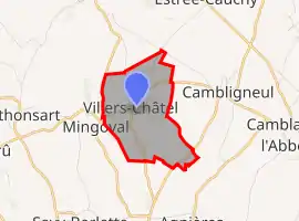 Villers-Châtel is situated some 13 miles (20.9 km) northwest of Arras, at the junction of the D73E road.