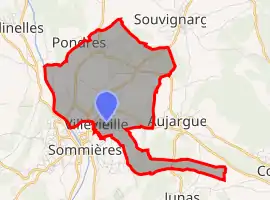 The climate is hot-summer Mediterranean (Köppen: Csa).[2] On 28 June 2019, during the June 2019 European heat wave, the temperature reached 45.4 °C (113.7 °F) in Villevieille, briefly the highest in French meteorological history, before being surpassed by Gallargues-le-Montueux later the same day.[3][4]